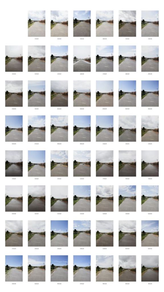 En ayant ce questionnement en tête, un rituel se met peu à peu en place, photographier chaque jour ma rue afin de garder trace de ce moment de vie si particulier. La perception de l’extérieur change de par le filtre mental qu’il s’y dépose. Ce paysage devient porteur du poids mental de la situation. Cette rue, anodine, devient la toile de projection de l’angoisse et de l’incertitude.