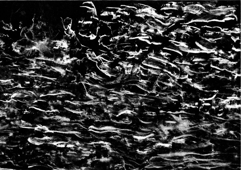 diptyque au format A3, empreintes au fusain et gouache sur papier kraft,