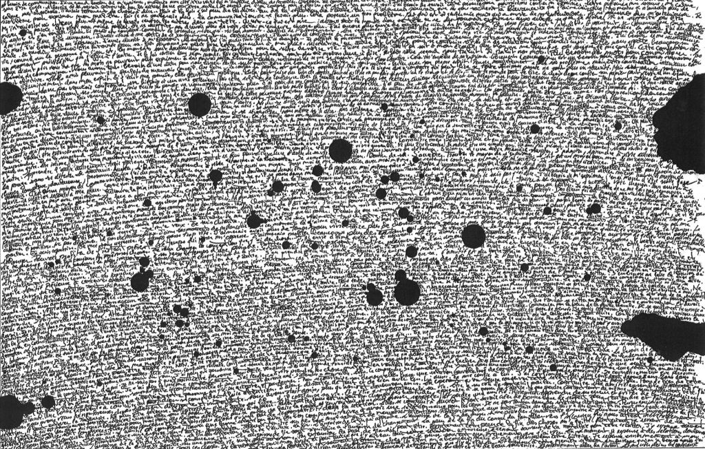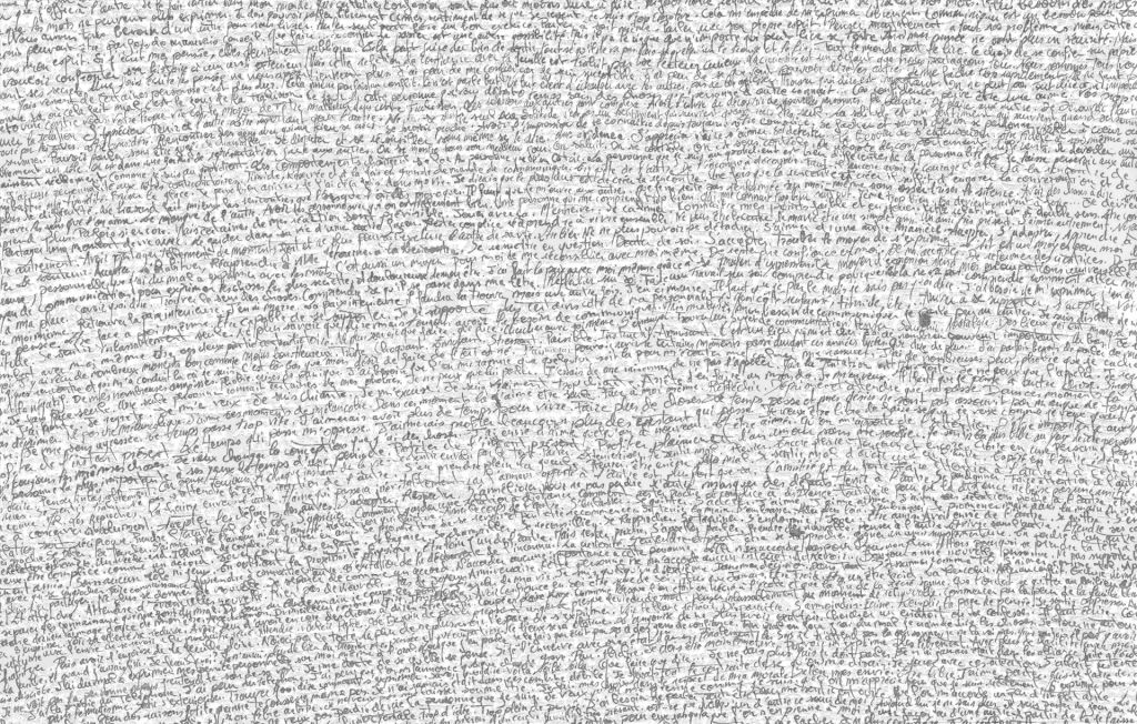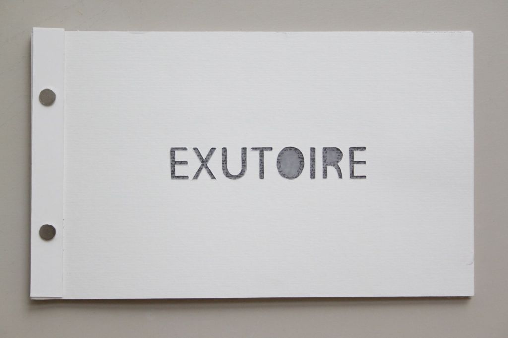 Exutoire est un recueil rassemblant une recherche plastique autour d’un texte manuscrit. Celui-ci est une divagation de la pensée autour du besoin de communiquer et de la relation aux autres. C’est ici la révélation intimiste d’un certain état d’âme où le côté pudique est préservé et soutenu par ce voile d’écriture illisible.