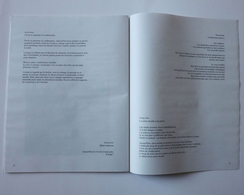Alors que je débute mes recherches en octobre 2019, j’ignore à ce moment-là que mon sujet aura un échos particulier avec les événements liés à l’apparition du Covid-19. Son apparition, engendrant le premier confinement, durant lequel j’ai écrit en majeure partie mon mémoire, a remis en question ma perception de mes recherches. J’ai ainsi appréhendé mon sujet via le prisme de la pandémie comme événement, impactant ainsi le format et la finalité de mon mémoire. Ainsi ce dernier s’achève par une analyse de la pandémie en date d’avril 2020 suivit de brèves intimes relatant mon état d’esprit, mes angoisses et espoirs accompagnés de photographies issues du projet 12:00.