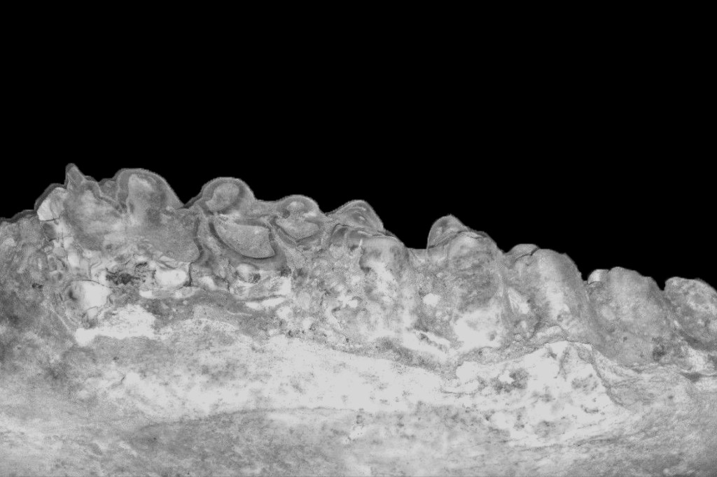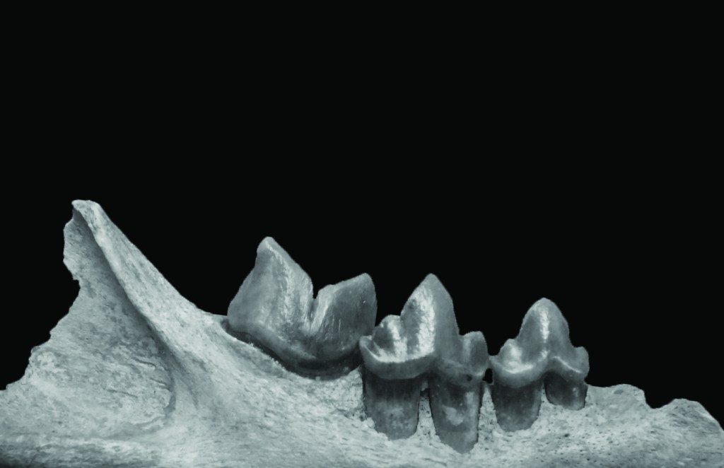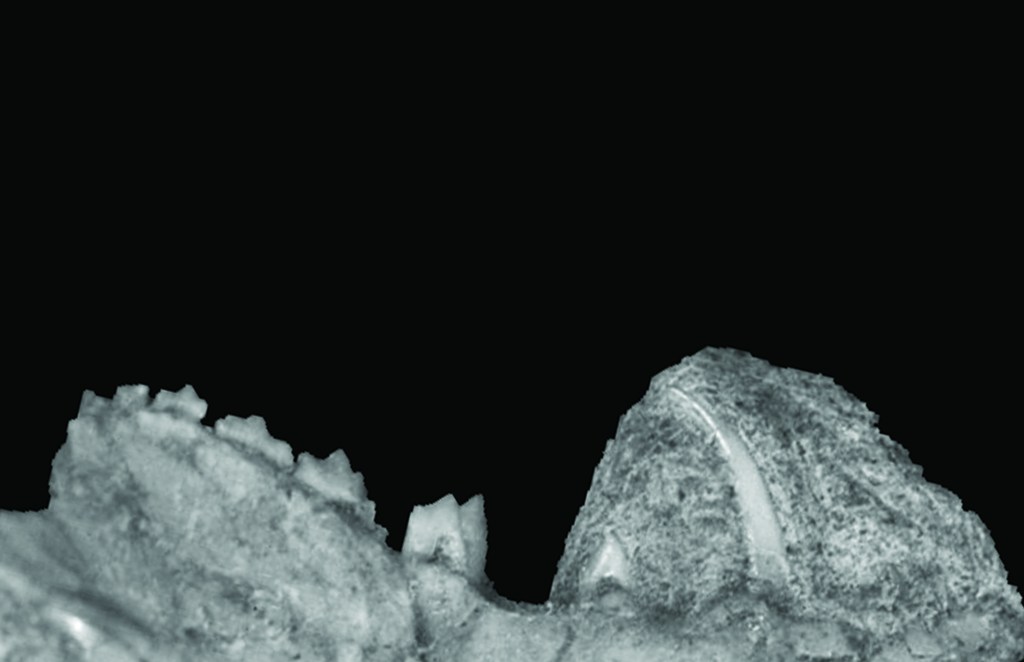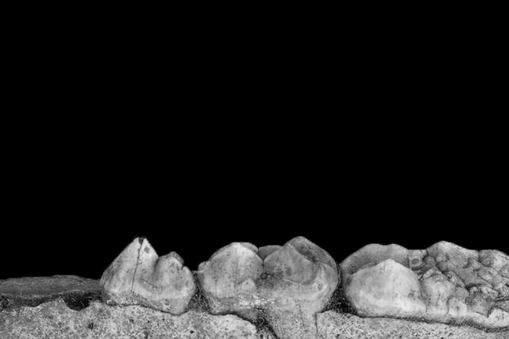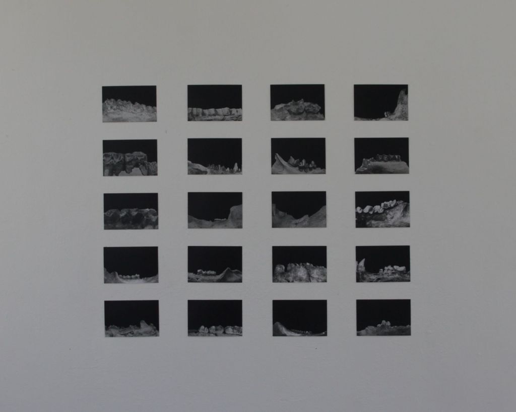Paysages d’un autre temps, série de 24 photomontages présentant des paysages désertiques, montagneux, arides et hostiles. Ces paysages imaginaires sont réalisés à partir de photographies de mâchoires d’animaux préhistoriques aujourd’hui disparus.