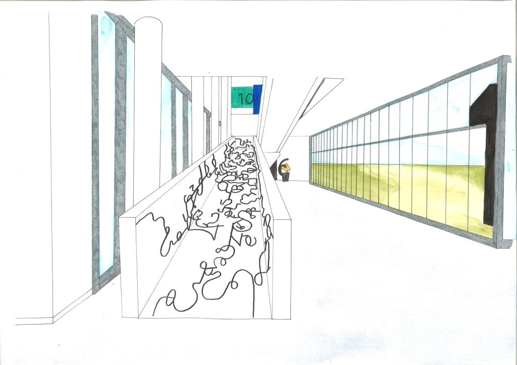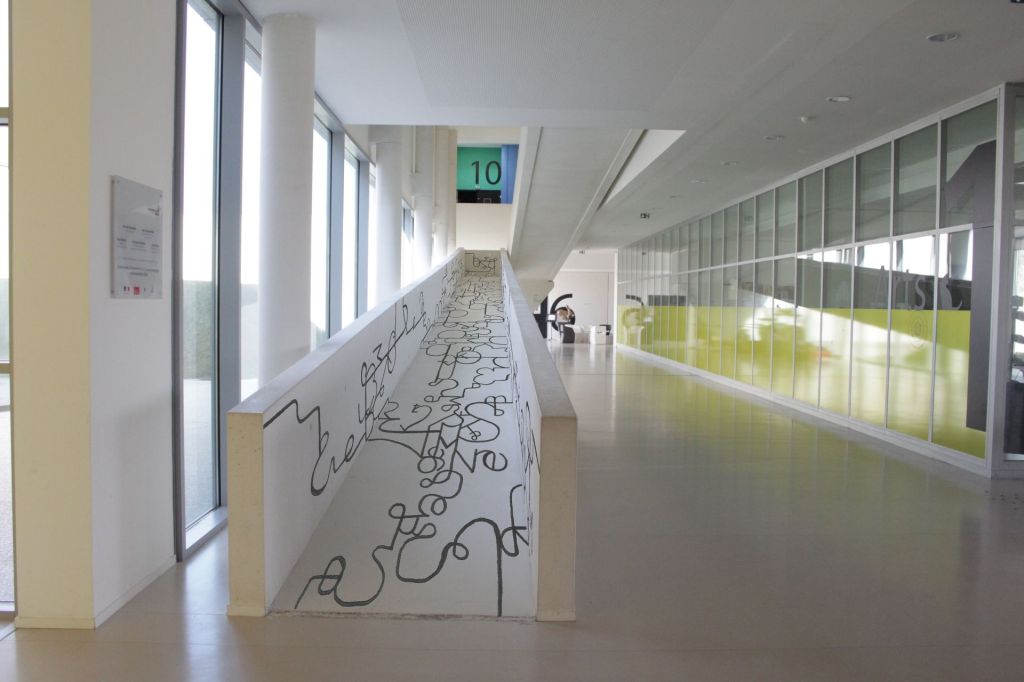 Réalisation de dessins à partir de la série Typograff s’inscrivant dans certains endroits de La Fabrique des Arts de Carcassonne. Ces dessins in situ s’organisent sous forme d’excroissance graphique en expansion dans l’espace architectural.